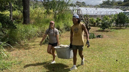 Day two started bright and early! Most of us woke up around five. We had our morning reading with some breakfast and were on the way to Calvary Chapel. There, we helped out in their food pantry and clearing out a storage room. Afterward, we ate our packed lunches in the van on the way to our following location where we met a couple. Joel & Jessica. They are local farmers and the number one tomato distributor on the island of Maui. Two of their greenhouses were destroyed by the wind from Hurricane Dora. Fires spread to the property across the road from their house. We spent the remainder of our day working on their greenhouses and preparing soil around their home for new plant beds. It was hard work, but we were happy to serve them that way. I am thankful for the opportunity to show them God's abundant love through acts of service. After the work day, we got dinner at another local spot and turned in for the night.