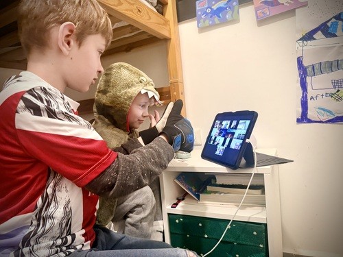 Because Purim is Monday — when Jewish families read the Book of Esther and kids wear costumes — the church set up a Zoom call so the children could put on their Purim costumes and connect from their safe rooms.